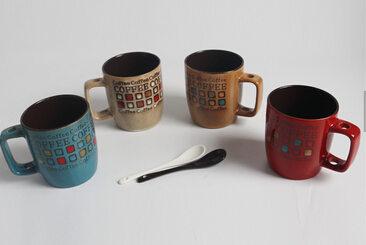 Ceramic mug with Various sizes,shapes,color glazes,decals with clients’logo;Customized Capacity is 180ml-440ml;Customized diameter is 7cm-9cm;More recyclable and eco-friendly than other materials