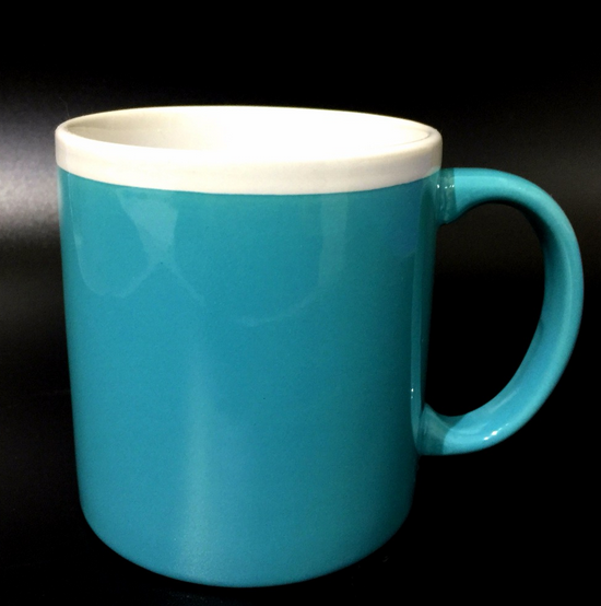 The inside of this mug is blue and the outside is yellow;the capacity of mug is 580ml and size is 10cm*11cm;it's Eco-Friendly,Stocked;can print the logo according to the customer's requirement.