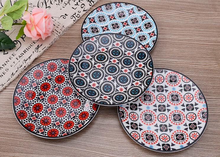 The center of this plate is different colored glaze and the edges are white that looks special;high quality and favorable in price,hot sale.