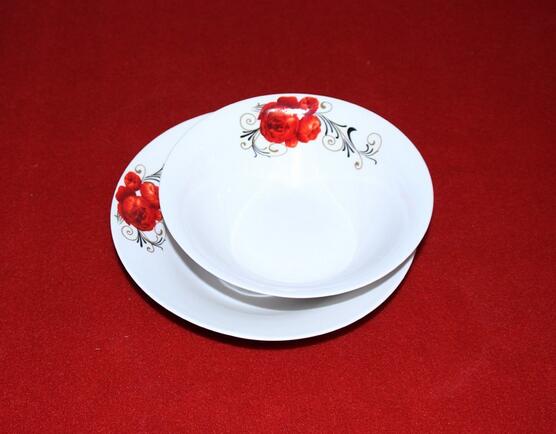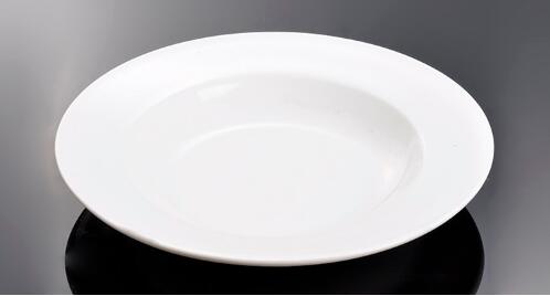 the plate have round deep shape;the color is pure white with flower pattern;the size can be customized;safety export common carton packing