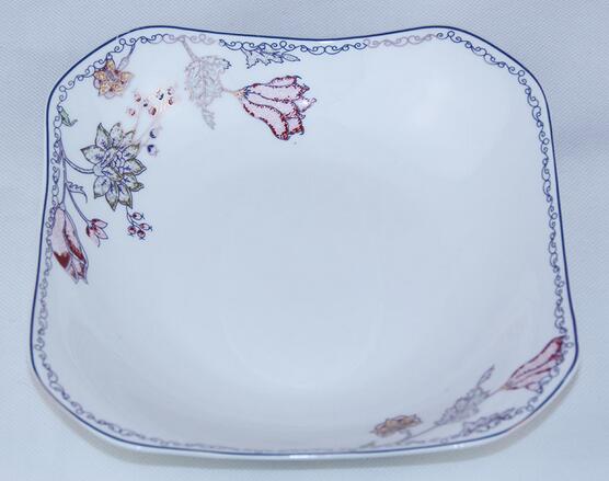 This plate is characterized by single color and square shape looks contracted and fashionable;the specification of plate is 9.5 inch;high quality and favorable in price.