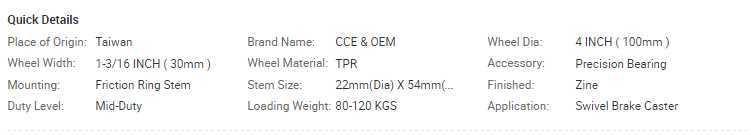 Welcome to our company. Chang Chuan Enterprise Co., Ltd. was established in 1980. We are a professional enterprise in caster field integrating manufacture, design and process. We make our efforts to meet customers' needs with good quality and excellent service.
