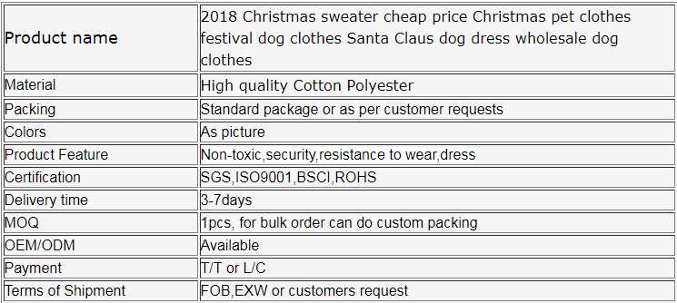 2018 Christmas sweater cheap price Christmas pet clothes festival dog clothes Santa Claus dog dress wholesale dog clothes