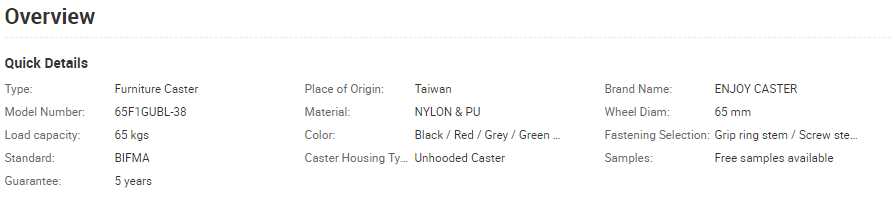 ENJOYING GO and DYWT company is located in Taiwan, specialized in manufacturing furniture PU caster and made double plastic Injection mold. With an experienced and professional team, we have exported our products to many countries and regions all over the world, especially America, Canada, Japan, India, the UK, Poland, Spain, Brazil and Turkey. Our products enjoy a good reputation among our customers.