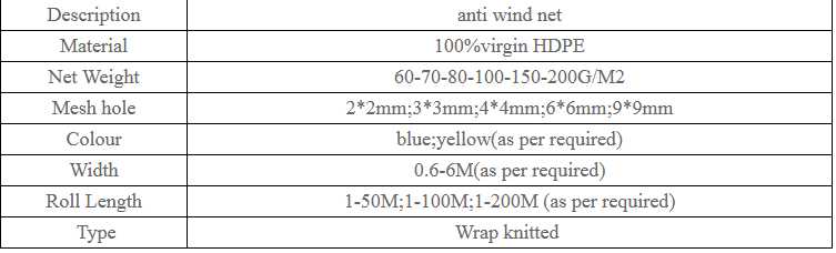 Anti Wind Netting makes the scope of protection wind speed reduced by 80% or more! Its special weave a way that is not behind the formation of vortex network; using the flexible structure, wind resistance than when the rigid structure of the wall can better absorb the wind. Firm texture, full-featured! Anti Wind Netting use is greater than or equal to 95% of high-density polyethylene (HDPE), in the production of raw materials by adding anti-UV agents, anti-aging agents, flame retardants, crosslinking enhancer, etc.