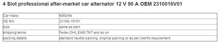 4 Slot professional after-market car alternator 12 V 90 A OEM 23100-16V01 for sale - China car alternator - Exportimes