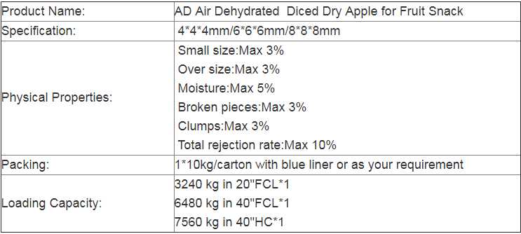 AD Air Dehydrated Diced Dry Apple for Fruit Snack