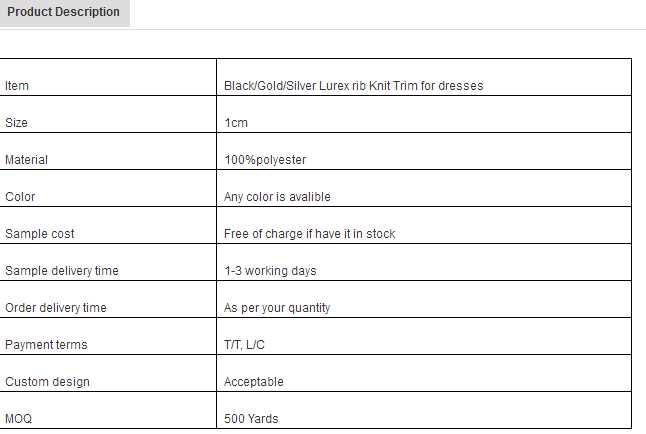 Black/Gold/Silver Lurex rib Knit Trim for dresses