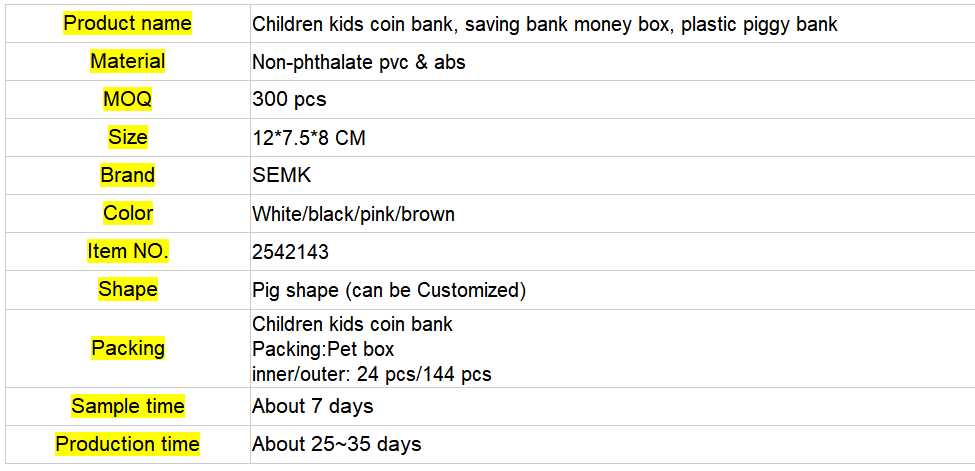 Children kids coin bank, saving bank money box, plastic piggy bank