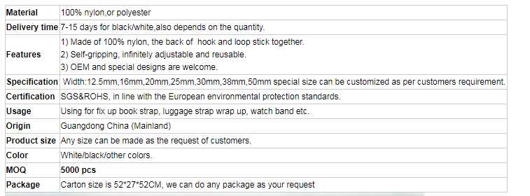 2) Material:standard hook&loop100% Nylon,or nylon+polyester,100%polyester,model hook or solf loop