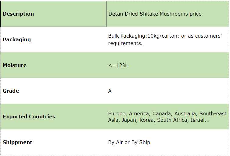 Our products include: Shiitake, Eryngii, Shimeji, Maitake,..., and many kinds of wild mushrooms: Truffles, Morels, Porcini (Boletus, Ceps), Chanterelle etc.; Fresh, Dried, IQF, Freeze Dried available. We also have Mushroom Spawn (logs), supplying stably year round!