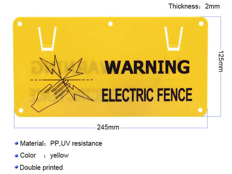 Double printed PP material yellow electric fence warning sign