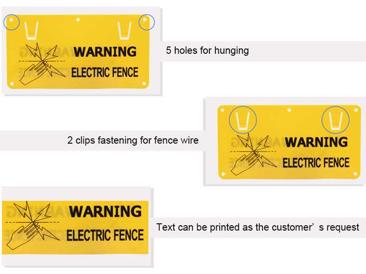 * Essential for all electric fences. * Double sided with indelible lettering. * Can be tied or clipped onto existing wire. * Moulded with UV stabiliser for long life in the harshest environments