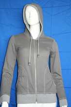 Description: lady's custom blank type long sleeve light weight hoodies/sweatshirts Material: 65% Polyester 35% Cotton single jersey Quality: Perfect workmanship, good knitting, linking,ironing and packing, strict quality control system. Size and color: We can make the size and colors as your request. MOQ: 800 PCS Details:1) Long sleeve, blank design . 2) Placket with 5# resin zipper,zipper with logo. 3)Hood with drawstring. 4)Kangaroo pockets with rib design