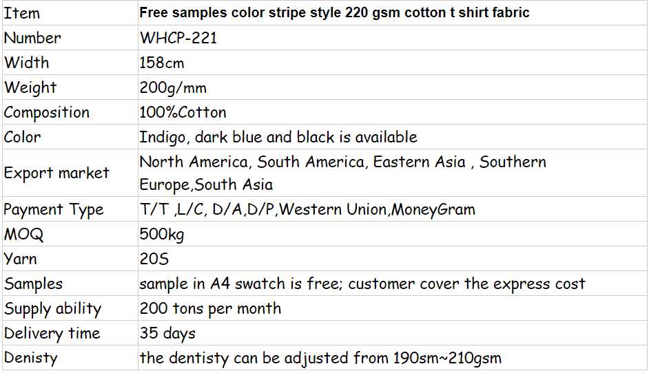 Free samples color stripe style 220 gsm cotton t shirt fabric