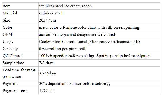 Home kitchen gadgets stainless steel ice cream scoop with pp handle