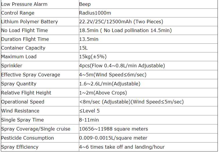 Carbon fiber structure, durable and portableHigh efficiency dynamic systemStable flight, good wind resistanceHigh safety, long service lifeA group of batteries are capable for two cruisesConvenient transfer with fold-able rotor and sprayerAuto cruise, resume cruise, smart flow controlAuto lost-control protection systemSimplified manipulation and maintenance with low cost