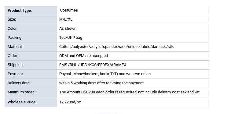 • Costumes Type