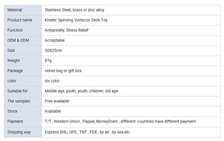 Packaging Details: Kinetic Spinning Vortecon Desk Toy package : velvet bag or gift box or satisfy buyers option