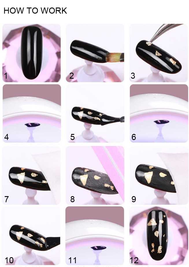 nail art foil fragmentcolor: silver/ gold/ bronze/rose goldchampange silver/ champange goldpacking: packed in a jarMOQ:100pcs each color