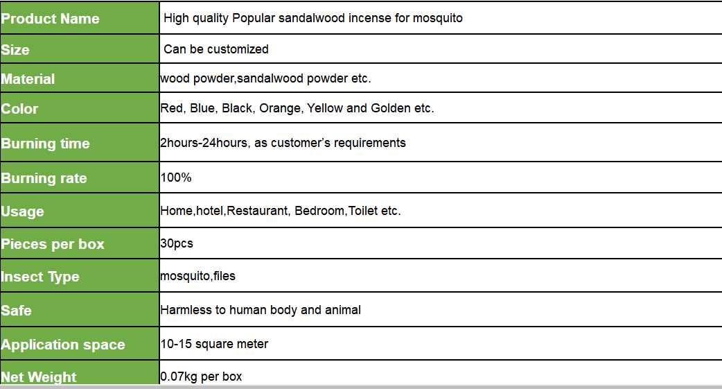 products are made from plant herb, material are totally harmless so that they will never harm health of adults and kids. The mosquito incense stick takes effect in 5 minutes after lighting it up, burning time is around 3 hours and it could effect for 10 hours. We can also provide any forms that customers demand, you are welcome to send us whatever you request of sticks length, color or any other demands.