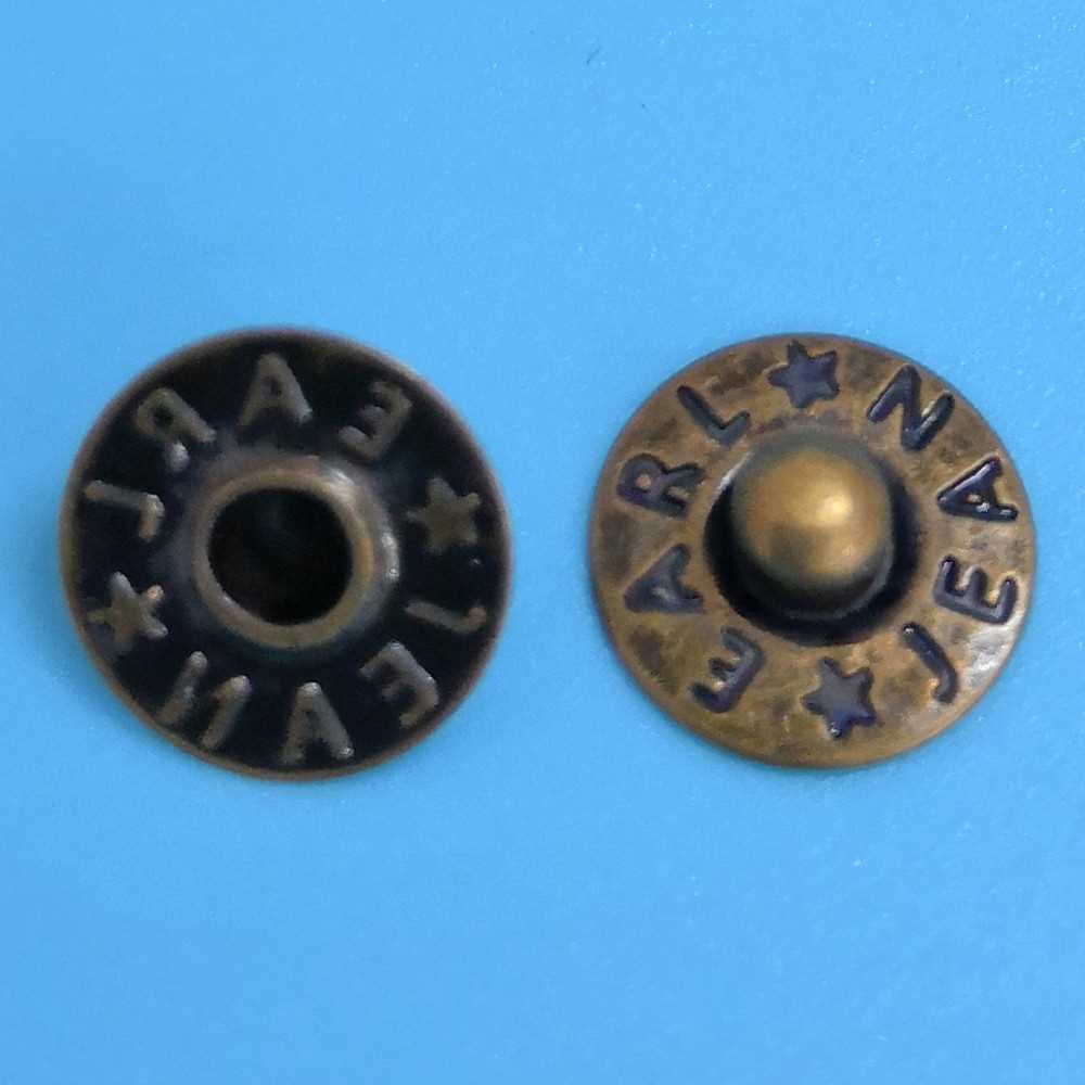 Rivets buttons style The size of Rivets buttons is 8mm, button style is suitable for Niu Zi trousers.This button can customize the logo, color and size to make your clothes more personalized.