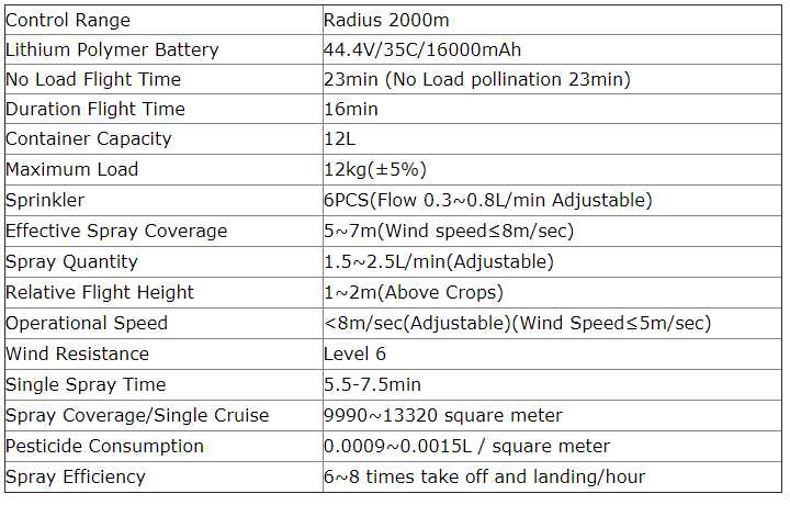Aluminum and carbon fiber structureHigh efficiency dynamic systemStable flight, good wind resistanceHigh safety, long service lifeFast flight speed, high operation efficiencyWide application on crop protectionAuto cruise, resume cruise, smart flow controlAuto lost-control protection systemSmart and stable flight control system
