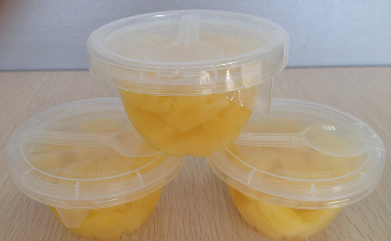Pineapple in plastic cups: