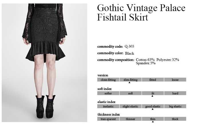 Gothic Vintage Palace Fishtail Skirt 1.The main material is made of palace ornate jacquard fabric 2.Front decorated with lace decals looks retro and elegance 3.Back DrawString design can be adjustable elastic
