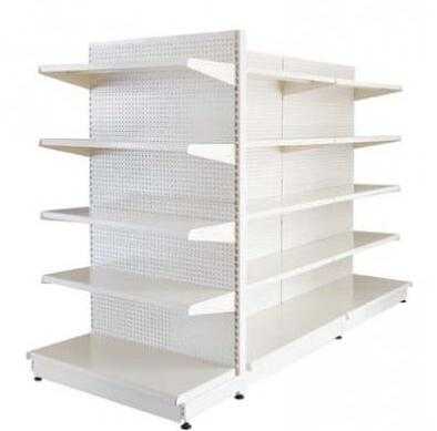 Retail pegboard shelving1) The most excellent system in Asian, one time forming, simple but firm structure.2) Heavy loading capacity up to 150kg/level by using 2 hooks bracket. 3) The perforated back panels are available for pegboard hooks.4) Easy for mass produced and cost less labour, so the price is even a little lower than the Tego style.5) Optional accessories available such as Cross tie bar, pegboard and cross tie bar hooks, wire or plastic shelf stopper.6) Installed easily without screws or nuts, which could save labour cost and not easily rusted.