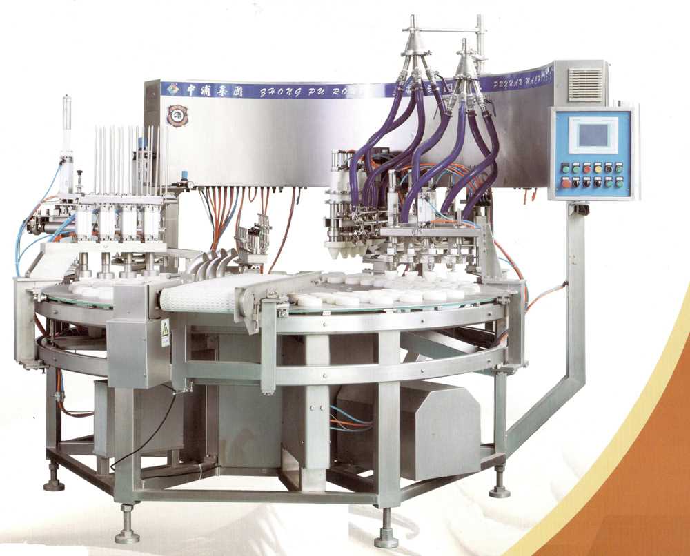 The product has functions of automatic sorting for cream cones, capping, cap pressing, product pushing out and conveying out. The filling station adopts time-limited filling theory, which can greatly lessen the structure breaking and damages when filling, thus keeping complete shape and good taste.