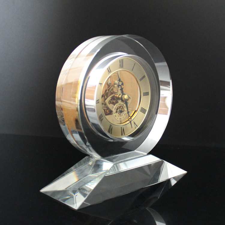 Round shaped table crystal clock customized crystal clock on sale