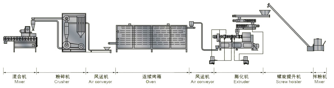 Suckling pig nutritious feed, also called Suckling appetizer, is based on scientific principles, that is, all kinds of nutritious grains are smashed by high temperature sterilization and fixed with trace elements. This kind of efficient nutritious powder solves the problem of food for weaning piglets, which can smoothly pass this dangerous period, making them faster and more shortly enter the growth period. This production line is of flexible configuration and easy use, so it is an ideal choice for the feed industry.