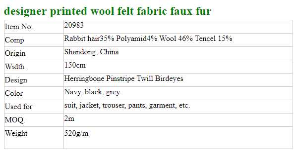 2. Wool and blended woolen fabric (100% wool, 100% cashmere, wool/cashmere, wool/nylon, wool/poly etc. mainly for coats);