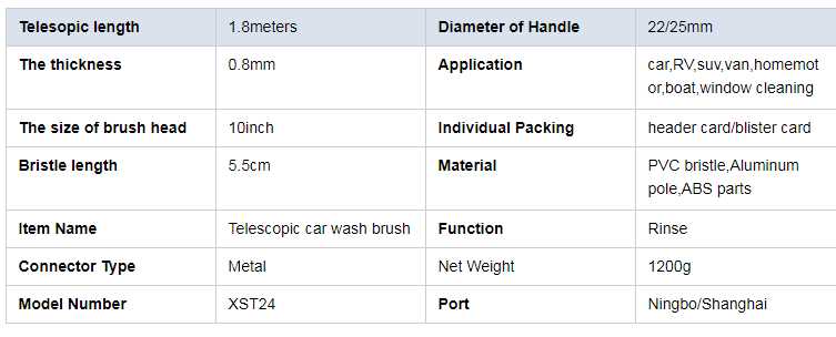 Specifications1) Water powered brush head clean the dirty more effectively like portable high pressure car washing machine.2)Ultra soft bristle clean thoroughly without scratching the painwork and finish3) Telscopicing pole with on/off ball valve4) Strong aluminum handle5) soap dispenser function