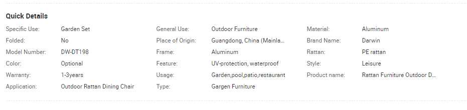 Holding while the creditworthy business, paying great attention to the quality, the innovation, the service and the commercial idea of sustaining development, Foshan Darwin Furniture co.,ltd. has been established from 2004 until now, has been practicing the 4 principles with heart and soul:" the most trendy design;the most reliable quality; the most reasonable price ;and the most excellent after service." Our products have been popular in Netherlands,Italy,Germany,Denmark,Spain,USA,Australia and Turkey......Where has Darwin Outdoor Furniture,where will be full of leisure!