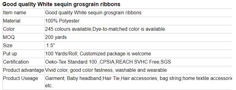 Good quality White sequin grosgrain ribbons