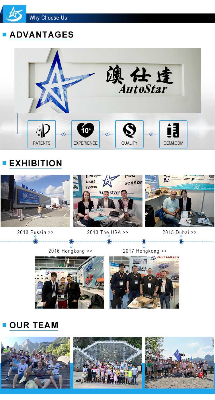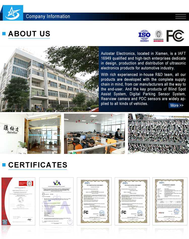 We focus on ultrasonic products, succeeded in developing and producing several new products such as Blind Spot Assist Systems (BSA) for car and truck, OEM sensors for all kinds of vehicles, and truck parking assist products. We have several patents on our technologies. Ultrasonic-based BSA is an active safety system originally developed by us.Our products are widely recognized and trusted by users and can meet continuously developing economic and social needs.We welcome new and old customers from all walks of life to contact us for future business relationships and achieving mutual success!
