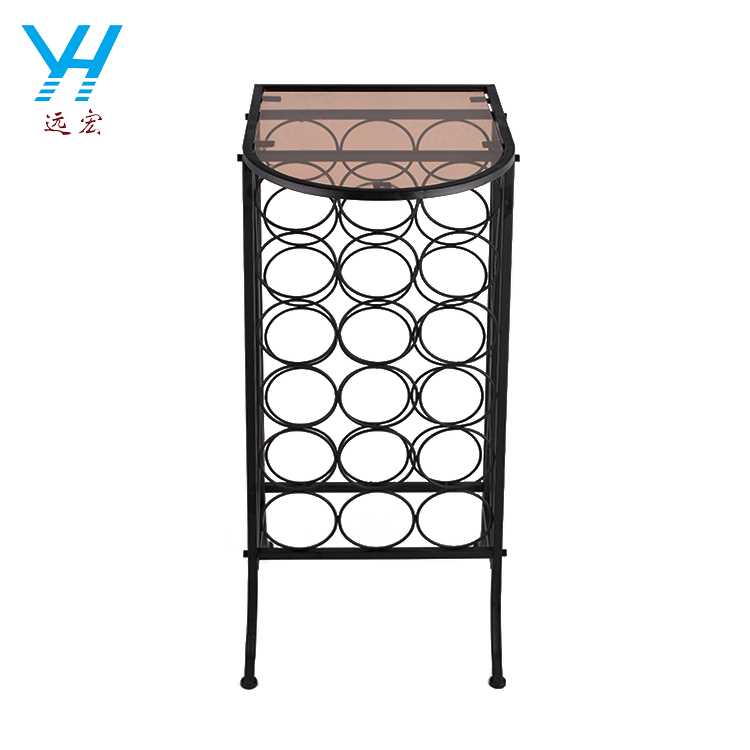 Fashion design metal wine rack with glass table top