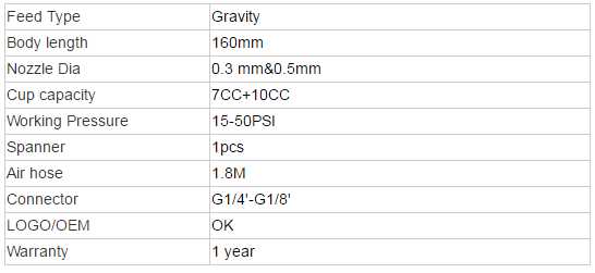 5. Recommended to use with single action airbrush.