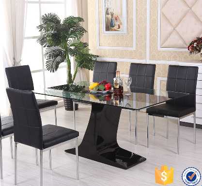 cheap modern glass dining table with mdf high gloss base
