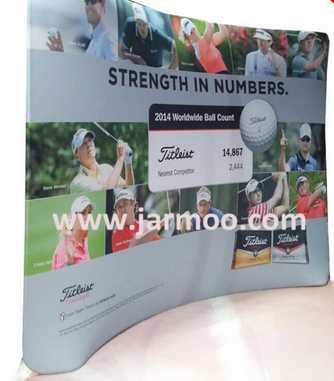 Fabric material: 260gsm custom fabric backwall with base Stand material: Anodized aluminium pole Size: w315xH230cm; 8ft, 10ft, 20ft, any custom size Shape: Curved /straight/ S shape Color: Full color print Printing: Dye sublimation, heat transfer print