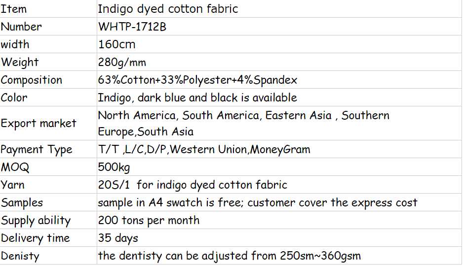 indigo dyed cotton fabric for jeans