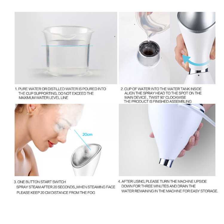 1. Powerful & Consistent Steam - Compared to normal face steamer, Nano ionic steam can penetrate the skin barrier and open pores more effectively. A tepid and gentle mist can unclog pores, remove dirt, oil, blackheads and leftovers of makeup, providing a quick nutritional-absorption for your skin.