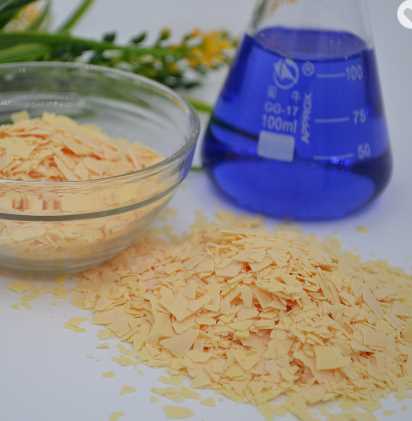 Yellow flake, soluble water, presenting strong solution, alkaline solution, easily