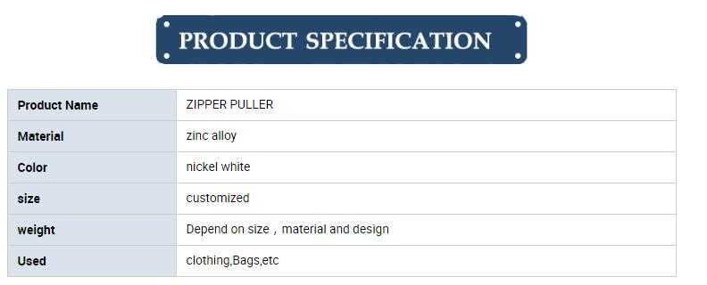 supplier custom logo Inspired Design Popular White nickel zinc alloy metal zipper puller / zipper head
