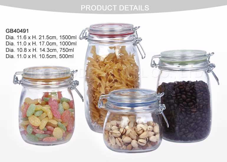 wholesale airtight glass jar with metal clip airtight glass bottle